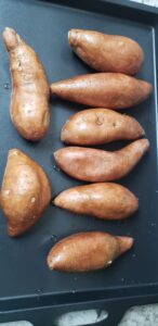 Oil and bake sweet potatoes for one hour on 350.