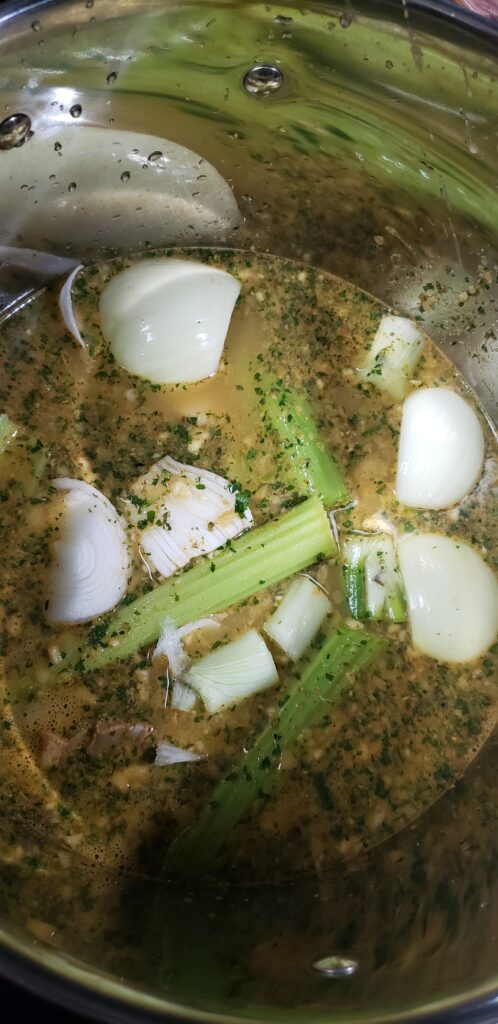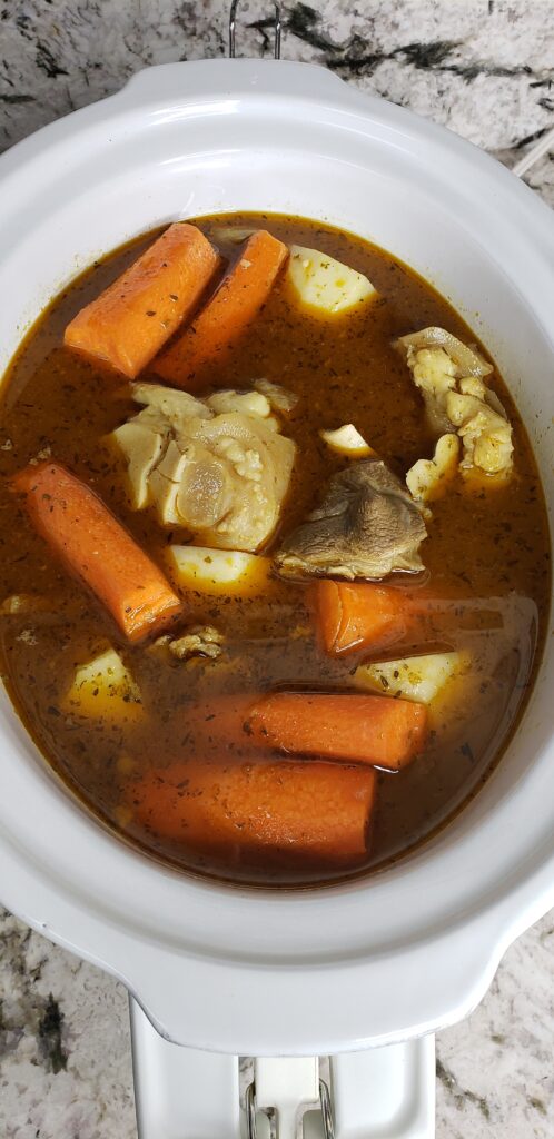 Boil for one hour on stove top then add everything to a crock pot. If you would like you can also leave it on the stove top until everything is tender and done. I prefer the crock pot 😋.