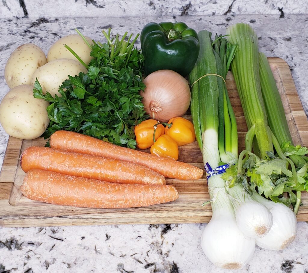 Chop onions, celery, peppers and parsley.
